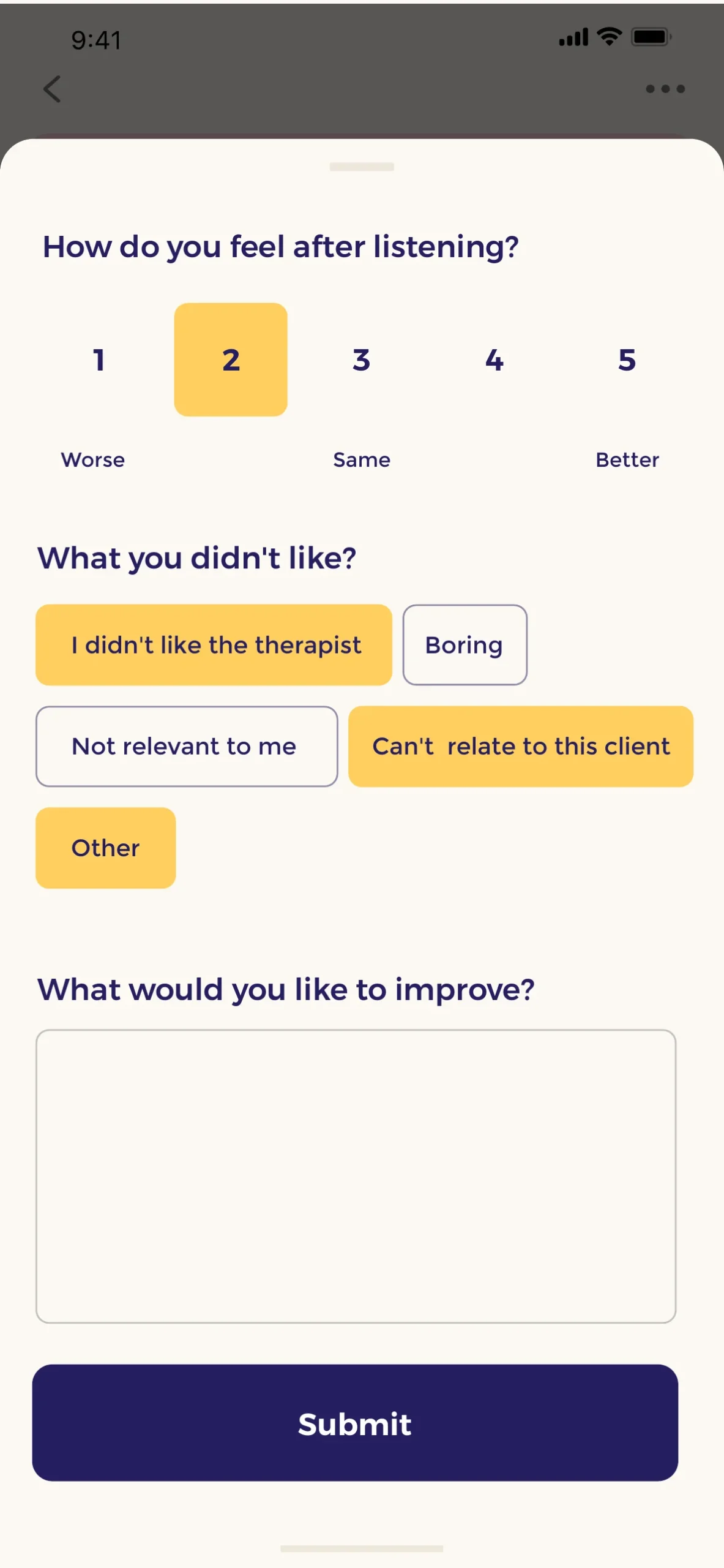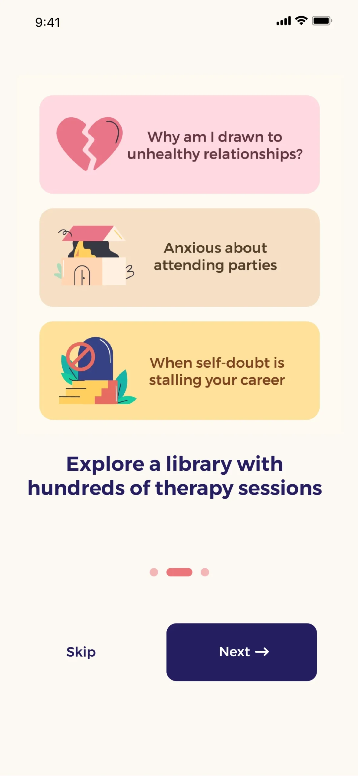 A mental health app is even more nuanced. Every screen and interaction must build trust and legitimacy, scaling up to an experience that feels safe, warm, and encouraging.