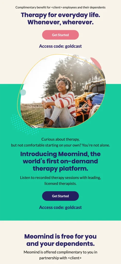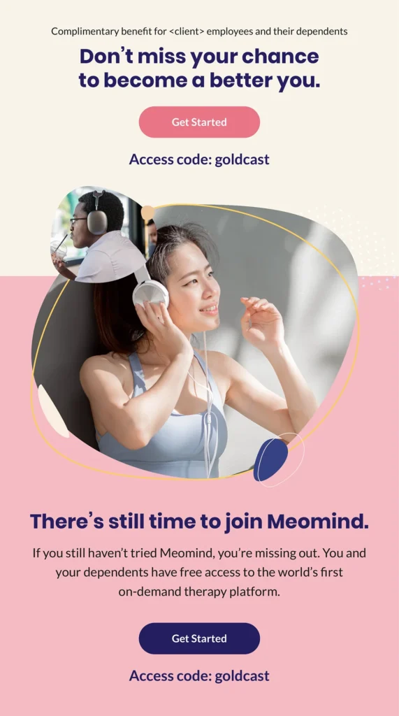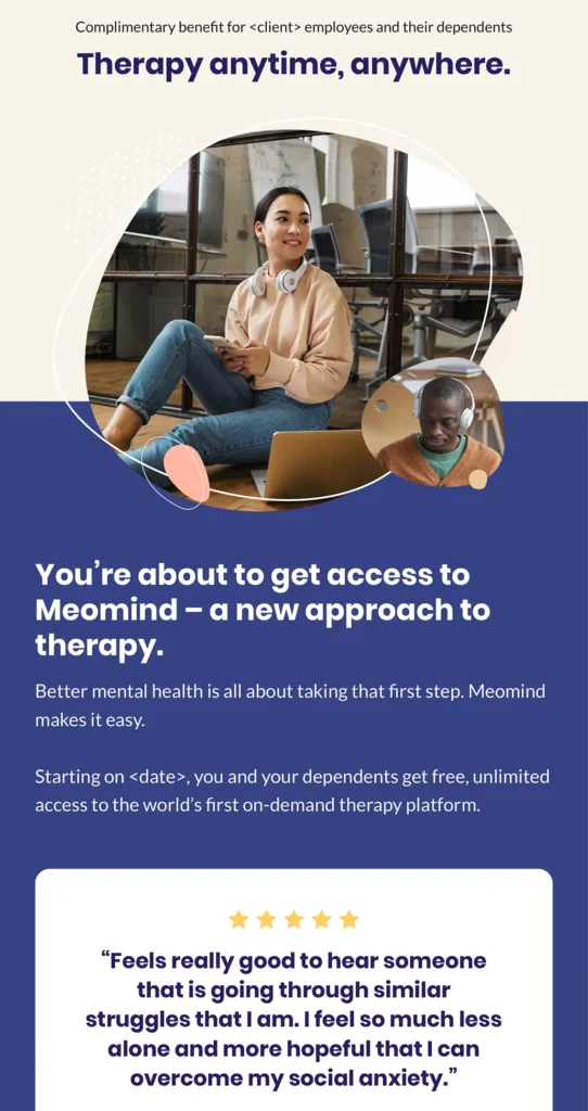 At the same time, I built content for end-users: members of insurance plans and employees of corporations who offer Meomind as a health benefit. Funnel sequences, email newsletters, Slack messages — I did it all.