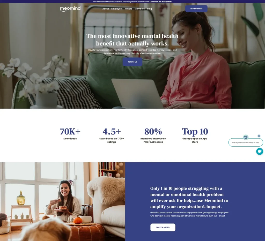 On the B2C👇 side, I helped Meomind grow to a top 10 therapy app on the App Store with 100k+ users and a 4.9-star rating.