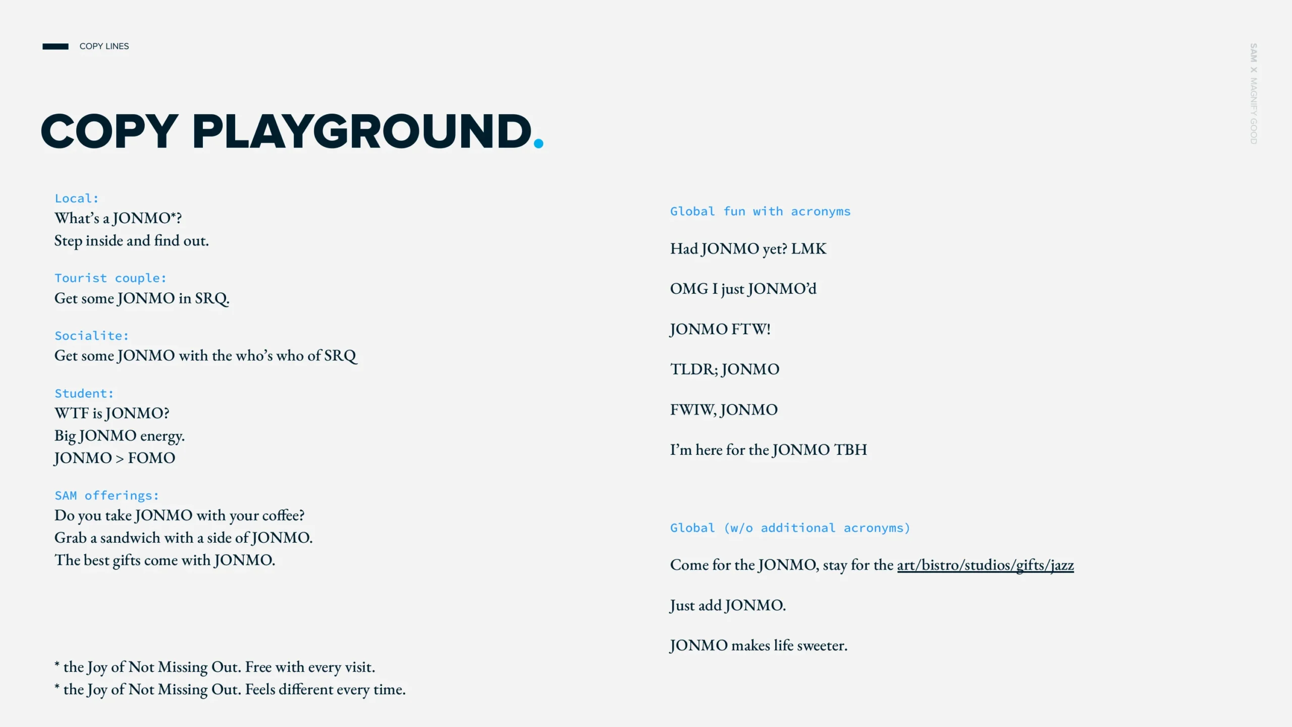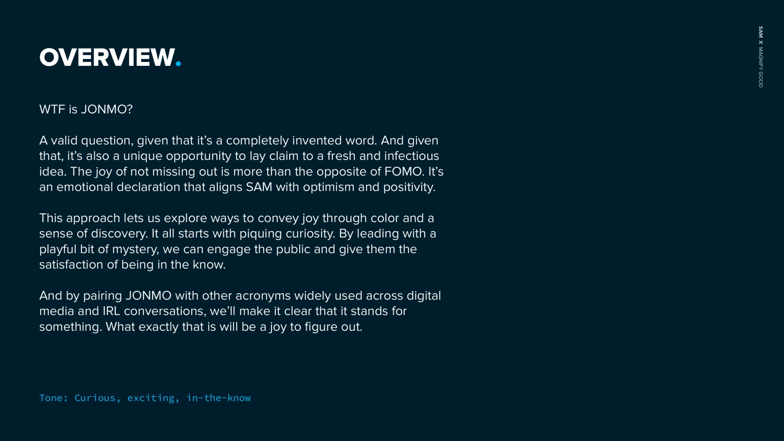 We created a campaign to launch the rebrand, complete with a mysterious neologism: JONMO, or the joy of not missing out.